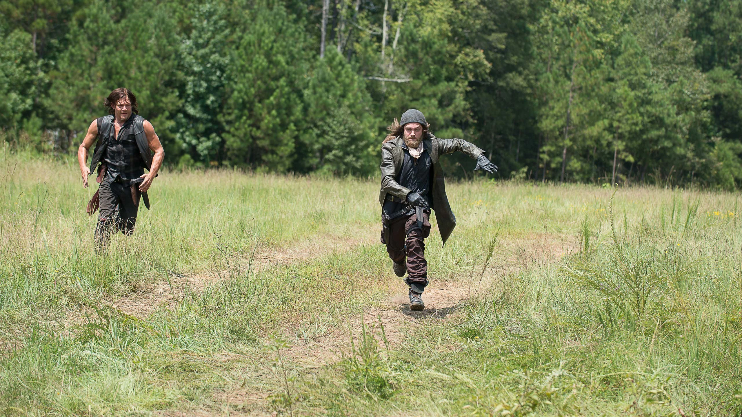 In der Zwischenzeit schließen Rick und Daryl zu Jesus auf, der eine Panne hat. Sie halten ihn mit Waffengewalt fest und fesseln ihn, jedoch nur so fest, dass er sich selbst befreien kann. Danach nehmen sie den Lieferwagen wieder an sich und fahren damit davon. Als sie über ein Feld fahren, hören Rick und Daryl plötzlich Lärm und realisieren, dass Jesus sich auf dem Dach des Lieferwagens befindet. Rick bremst scharf ab und befördert ihn somit auf den Boden. Daryl rennt hinter Paul Rovia hinterher während Rick die Beißer in der Nähe tötet. Daryl und Jesus enden dabei im Lieferwagen und kämpfen dort um diesen. Währenddessen nähert sich ein Untertoter Daryl von hinten, der aber durch einen Schuss von Jesus erledigt werden kann. Durch einen kleinen Unfall löst Jesus die Handbremse. Der Lieferwagen rollt den Hügel hinunter und versinkt im See. Daryl stimmt Rick zu, dass sie Jesus nicht zurücklassen werden. Er schlägt Jesus bewusstlos nachdem Rick klarstellt, dass der Fremde Daryl vor einem Beißer gerettet hat.