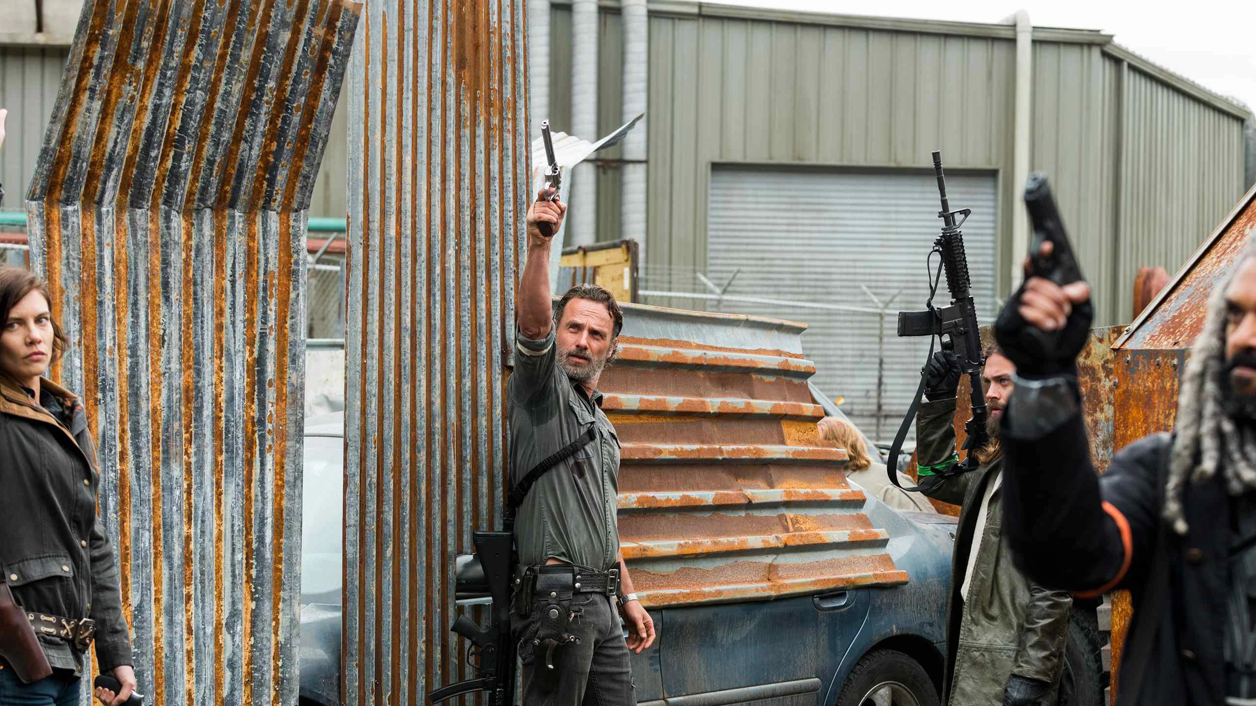 Negan positioniert sich und erklärt, dass er seine Leute nicht einfach sterben lassen will, nur um ein Spiel zu spielen. Er will also wissen, was Rick von ihm wolle. Rick erklärt, dass sie sich nur alle ergeben müssen und dann niemand sterben werde. Negan fragt, was mit ihm passieren wird. Rick meint, dass er ihm das doch schon zwei Mal gesagt hätte. Negan erwidert mit der Frage, ob er denn genug Leute für diesen Kampf habe? Negan lässt Gregory rausholen, der erklärt, dass Hilltop auf Negans Seite stünde und jeder, der sich gegen Negan stelle, nicht mehr zur Gemeinschaft gehöre, ebenso deren Familien. Jesus erklärt aber deutlich, dass Hilltop hinter Maggie stünde. Derweil fahren Autos in Richtung Herde und es kommt zu einer Explosion, die Carol, Morgan Tara und Daryl als Falle gelegt hatten. Negan sieht die Rauchwolke und meint, dass es nun wohl losginge. Rick erklärt erneut, dass Negans Leute sich ergeben sollten. Er fängt an von zehn abwärts zu zählen, eröffnet bei sieben allerdings das Feuer. Alle schießen auf das Gebäude, sodass die Scheiben nur so bersten. Negan und seine Leute haben sich nach drinnen gerettet. Derweil beobachten Daryl, Carol, Tara und Morgan, wie sich die Beißer nähern. Daryl steuert die Herde weiter Richtung Hauptquartier der Saviors. Dort versucht Negan sich in Sicherheit zu bringen, doch Rick hat ihn gesehen und schießt wild in seine Richtung, kann ihn aber nicht treffen. Gabriel macht Rick deutlich, dass sie nun gehen müssen, als sich die Herde nähert. Rick fährt los, aber Gabriel erspäht den um Hilfe flehenden Gregory und entscheidet sich, ihm zu helfen. Als er bei ihm ist, schlägt er vor, etwas abzuwarten, doch die vielen Kugeln, die um sie herum fliegen, machen Gregory nervös. In einem nicht durchdachten Manöver schafft er es zum Auto und fährt los. Gabriel bleibt zurück und versucht von der Herde nicht entdeckt zu werden.