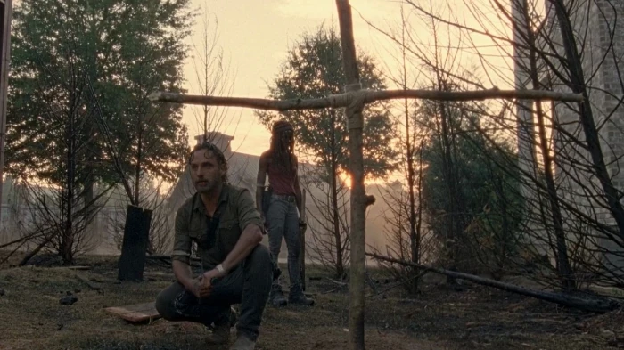 Una vez que Los Salvadores se marcharon después de cumplir con su cometido, todos los habitantes de Alexandría abandonaron el lugar para guardar refugio en Hilltop y así poder reagruparse con el resto de las comunidades de la alianza; mientras que Rick y Michonne optaron por permanecer con Carl durante sus últimos alientos hasta eventualmente darle sepultura en lo que quedaba de Alexandría. Sin más nada que hacer, la pareja emprendió su viaje con su gente y con un profundo pesar contemplaron como su hogar era consumido por las llamas e invadido nuevamente por algunos caminantes.