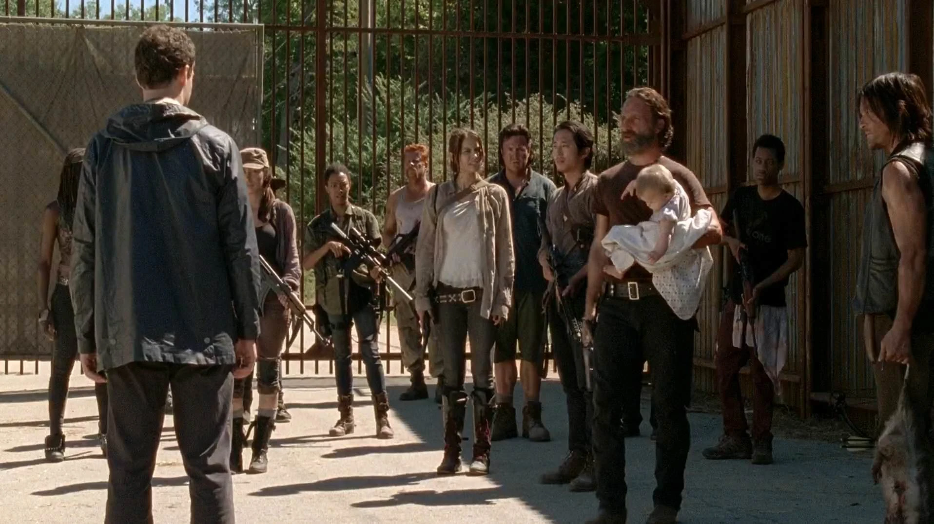 Llevando rápidamente a su malherido hijo a la enfermería para poder ser tratado de sus heridas por Denise, un furioso Rick se dejó llevar por sus sentimientos y procedió a matar a los caminantes con su hacha siendo su valentía lo que conmovió al resto de los habitantes de Alexandría a perder el miedo y salir de sus casas para ayudar al alguacil a defender a la comunidad de las criaturas. Todos unidos - sumado a la llegada de Glenn, Abraham, Sasha y Daryl - lograron acabar con todos los caminantes y finalmente poner fin a la invasión en una épica última batalla que marcó en la vida de todos sus participantes.