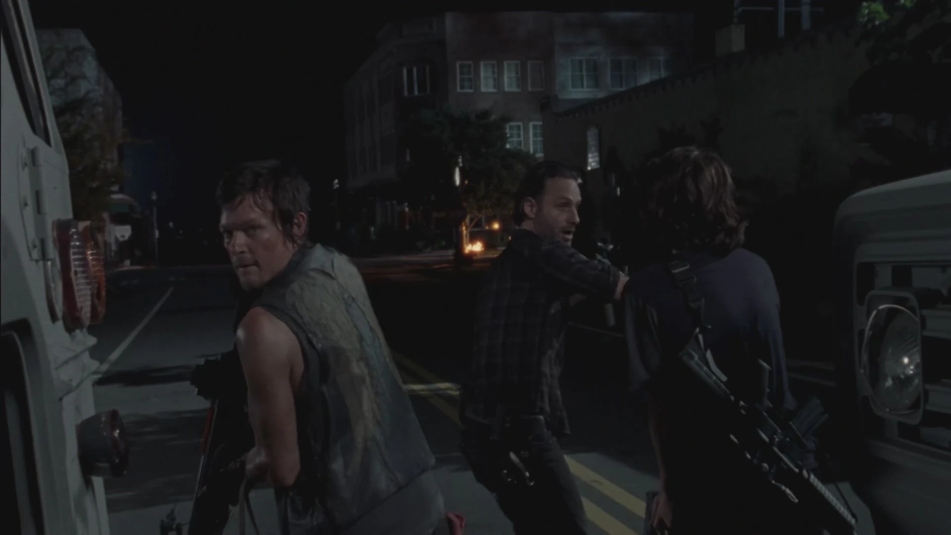 - Los habitantes de Woodbury intentan abandonar el pueblo.
