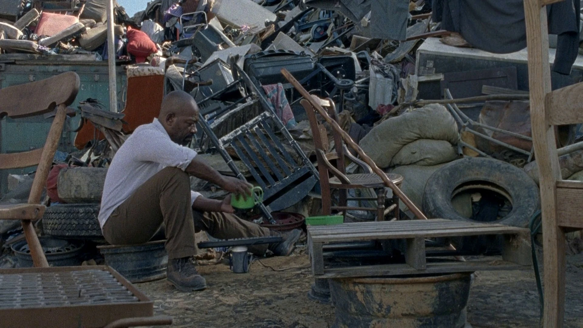 ![]() Un hombre sentado - John Dorey - cerca a una fogata se encuentra leyendo un libro y comiendo un caramelo cuando escucha un sonido entre los arbustos. Intentando entablar una conversación con el extraño, John procede a decirle que no hablo con nadie durante un año y que le gustaría poder hablar con alguien. Al no obtener respuesta, John procede a contar como conoció a una mujer quien llego a su casa, llegándose a enamorar y aceptando que cosas buenas llegan a suceder. Un caminante aparece entre las sombras, siendo asesinado por John y observa sorprendido a Morgan, preguntándole cual es su historia. En su solitaria residencia en El Basurero, Morgan se encuentra lavando su ropa. De repente Jesus llega a visitarlo, entabla una conversación con el y lo insta a volver a la comunidad, asegurándole que el quiere proteger a las personas. Morgan observa atentamente a Jesús y no responde. ![]() Morgan comienza a preparar café cuando Carol llega a visitarlo e intenta convencerlo de regresar con ella al Reino argumentando que solo quería ayudarlo tal como él había hecho con ella en su momento. Morgan se queda en silencio. Mientras prepara su comida, Morgan recibe la visita de su viejo amigo Rick Grimes. Su amigo intenta convencerlo de volver con él y los demás para reconstruir Alexandria, argumentando que el aun era la misma persona pero Morgan se niega. Rick le aclara que de una forma u otra se iba a encontrar con gente a lo largo del tiempo. Morgan no responde y Rick le dice que el nunca podrá estar solo. Sin decirle a nadie, Morgan empaca sus cosas, toma su vara de combate y huye del lugar. Morgan comienza a caminar en la nueva ruta pero se detiene cuando escucha las voces de sus amigos, se detiene en una intersección y decide dormir ahí. Al día siguiente, Morgan continua su camino y comienza a correr. ![]() En los días siguientes, Morgan continua su camino intentando encender un auto abandonado, pero lo deja cuando no enciende. El encuentra a un grupo de sobrevivientes durante su travesía pero decide dirigirse al oeste. En uno de sus recorridos, Morgan llega hasta un auto abandonado y encuentra a un hombre herido. Intentado ayudarlo, Morgan le ofrece dejarle un botiquín de primeros auxilios pero el hombre se niega y le insta a irse. ![]() Morgan llega a Texas y al caer la noche, escucha a un solitario sobreviviente que intenta conversar con el. Morgan intenta alejarse de el pero observa a un caminante que se dirige al hombre y cuando intenta acabar con la criatura utilizando su vara de combate, el caminante es asesinado por John. |