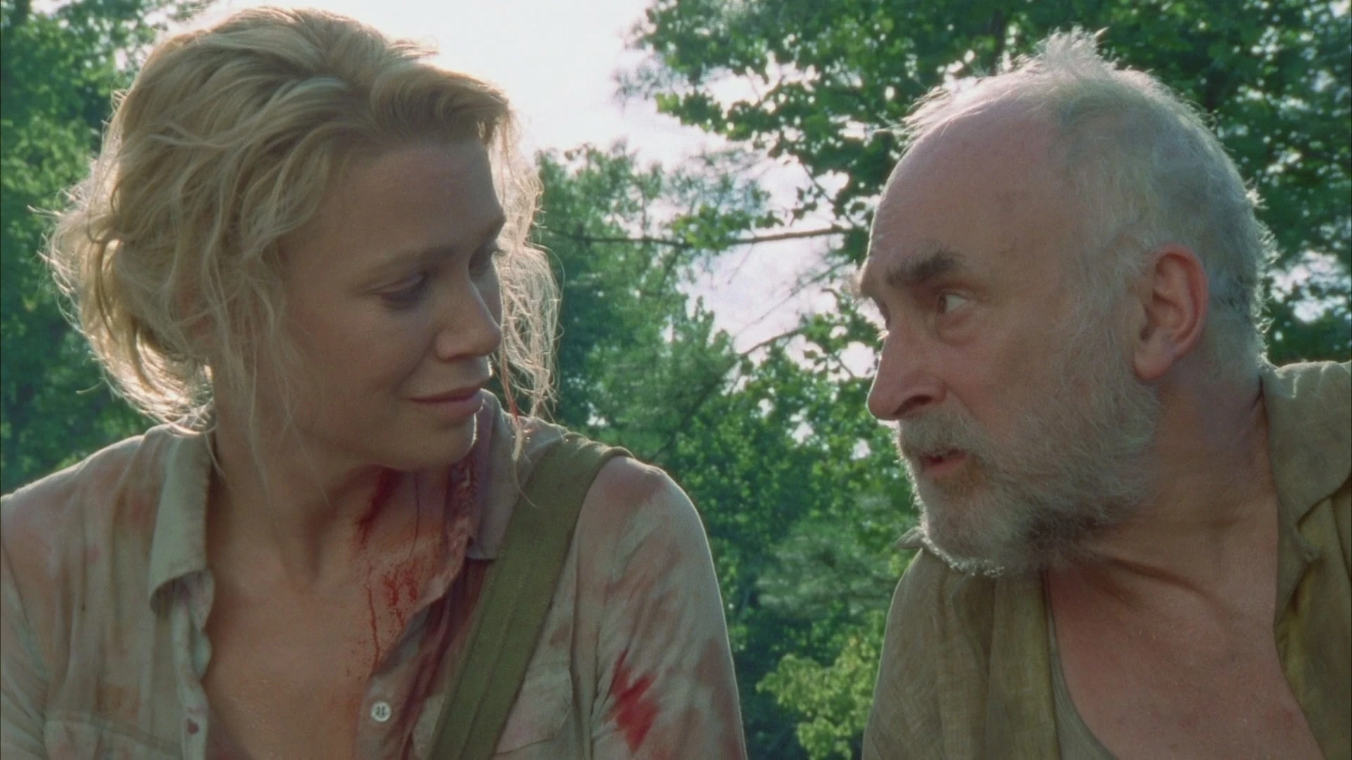 ![]() Rick observa el sol levantarse sobre Atlanta y trata de contactar con Morgan a través del walkie-talkie. El policía le advierte a su amigo que la ciudad no era lo que pensaban y que le pertenecía a los muertos ahora. Andrea cuida del cuerpo de Amy y Lori se acerca a darle sus condolencias. Cerca de ellas, Daryl clava un pico en las cabezas de los cadáveres para evitar que se reanimen mientras que Glenn y T-Dog lanzan los cuerpos a una hoguera. ![]() Rick, Shane y Lori discuten que hacer con Andrea puesto que era solo cuestión de tiempo para que Amy se convierta en caminante y entonces Rick trata de aproximarse a la mujer, pero Andrea sin mediar palabra le apunta con su pistola y le dice que sabía como utilizarla ahora. Rick simplemente retrocede. Continuando con la limpieza, Morales y Daryl arrastran el cadáver de un campista hacia el fuego pero Glenn los detiene y les grita que no quemaban a los suyos sino que los enterraban. El muchacho está visiblemente afectado por lo que había ocurrido. Mientras Jacqui y Jim apilan algunos cuerpos, la mujer nota sangre en la remera de Jim. Aunque el hombre trata de ocultarlo diciendo que no era su sangre, Jacqui rápidamente le anuncia a todos que un caminante lo había mordido. Daryl y T-Dog obligan al hombre a levantarse la remera y descubren que tenía una profunda herida en el abdomen. ![]() El grupo discute que hacer con Jim. Daryl no pierde tiempo en ofrecerse para clavarle un pico en el cráneo pero Rick piensa que en el CDCE podrían ayudarlo. Shane cree que la base militar Fort Benning - ubicada a 100 kilómetros en la dirección opuesta - era una mejor opción y la conversación se desvía rápidamente de su tema original. Irritado, Daryl toma su pico y marcha hacia Jim dispuesto a acabar con él, pero Rick le apunta con su revolver y le recuerda que ellos aún no mataban a los vivos. ![]() Dale se sienta junto a Andrea para darle sus condolencias y le cuenta como fue que perdió a su esposa luego de una dura batalla contra el cáncer. Él le revela que cuando su esposa murió quedó dolido y molesto por mucho tiempo, y que desde ese día hasta ahora las primeras personas que le han importado sinceramente han sido ella y su hermana. Andrea saca el collar de sirena que había sido para Amy y se lo coloca a su hermana por el cuello, confesando que se sentía muy culpable por haberse perdido muchos de sus cumpleaños. Daryl continúa agujereando los cráneos de los cadáveres y cuando llega a Ed, Carol lo detiene y le dice que era su esposo, por lo tanto ella debía hacerse cargo. Carol toma el pico y entre sollozos se lo clava a su marido en la cabeza repetidas veces. ![]() En el suelo, Amy finalmente comienza a moverse. Ella abre sus ojos y trata de llegar hasta Andrea. Sus ojos están inyectados de sangre y además gime suavemente. Desde la distancia el Dale y los demás se preparan para intervenir. Andrea lagrimea y se disculpa por no haber estado allí para ella. Aunque parece que será incapaz de acabar con su hermana, Andrea levanta su pistola a último momento y le vuela la tapa de los sesos. Rick y Shane cavan algunas tumbas cerca del campamento. Mientras trabajan, Shane le reclama a Rick por no haber estado durante el ataque y de cierta manera lo culpa de las de muertes que hubo. Rick se defiende diciendo que sin las armas que trajo consigo, las pérdidas podrían haber sido mucho mayor. ![]() Los sobrevivientes llevan a cabo un funeral. Tras la ceremonia, Carl le pregunta a Rick si estaban seguros ahora y el hombre le promete que jamás volverá a abandonarlos. En privado, Rick le pregunta a Lori si ella también lo culpaba por no haber estado en el campamento durante el ataque y le pide que lo apoye en su decisión de marchar hacia el CDCE. Si bien no lo culpa directamente tal como lo hizo Shane, ella no sabe si podría seguirlo ciegamente hacia el CDCE. Ella le pide que le diga algo seguro y entonces Rick le responde que lo único seguro que tiene es su amor por ella. En la autocaravana, Rick le asegura a Jim que le conseguirán ayuda, pero el hombre no comprende pues empezaba a delirar. Afuera, Shane le pide a Lori que convenza a Rick de que el CDCE era una mala opción, advirtiéndole que no podía elegir su matrimonio por encima del bienestar de las personas. Lori le dice que la gente a su alrededor podía decidir sin necesidad de que ella ponga su matrimonio de por medio y entonces Rick emerge de la autocaravana. Molesta por el comentario de Shane, Lori inmediatamente apoya a su marido con su plan. ![]() Rick, Shane y Dale van al bosque para asegurarse que no queda ningún caminante merodeando por los alrededores. A solas, Shane trata de convencer a Rick de cambiar de idea pero el policía insiste en que iba a hacer lo que era mejor para su familia y sin querer agrega que Shane no lo comprendía porque no tenía una propia. Esto provoca la ira de Shane, quien le recuerda que él mantuvo a salvo a Carl y Lori como si fueran suyos, y aunque Rick trata de disculparse Shane continúa agresivo. ![]() Un ruido llama la atención de Rick y lo hace alejarse, y entonces Shane aprovecha para apuntarle con su escopeta desde la distancia. Con rabia, Shane vuelve a bajar su arma y entonces nota a Dale mirándolo consternado. A Shane no le queda de otra mas que disimular que nada había ocurrido. De regreso en el campamento, Shane anuncia que estaba de acuerdo con seguir el plan de Rick y que partirían hacia el CDCE a la mañana siguiente. Al amanecer, Rick trata nuevamente de contactar con Morgan para ponerlo al tanto de lo que iban a hacer, pero nuevamente no obtiene respuesta alguna. ![]() El grupo está listo para partir pero Morales les informa que él y su familia ya no seguirán con ellos. Él hombre le dice a Rick que probarían suerte tratando de encontrar a sus familiares en Alabama y entonces el policía le entrega un arma pidiéndole que se cuide. Tras una emotiva despedida, todos abandonan el campamento. Por el